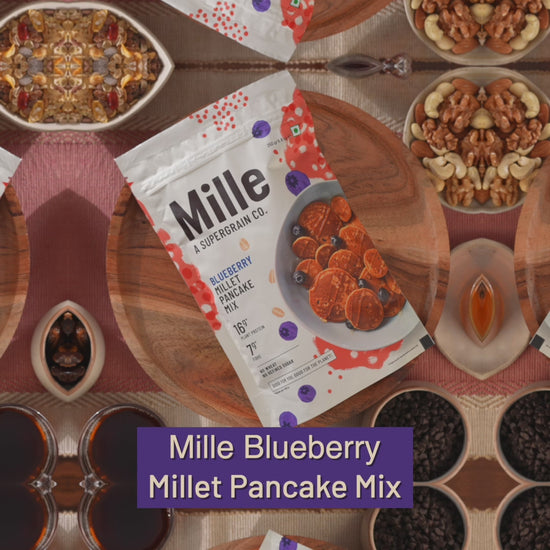 Mille Millet Blueberry Pancakes are a wholesome and delicious twist on a breakfast classic! Made with millets, these pancakes offer a great texture with a subtle, nutty flavor that perfectly complements the burst of fresh blueberries. They're naturally hearty yet delicate, making them a guilt-free indulgence for health-conscious foodies. Whether drizzled with maple syrup or enjoyed on their own, Mille Blueberry Pancakes deliver a satisfying blend of nutrition and flavor. A must-try for those looking to elevate their pancake game with a nutritious and tasty option!
