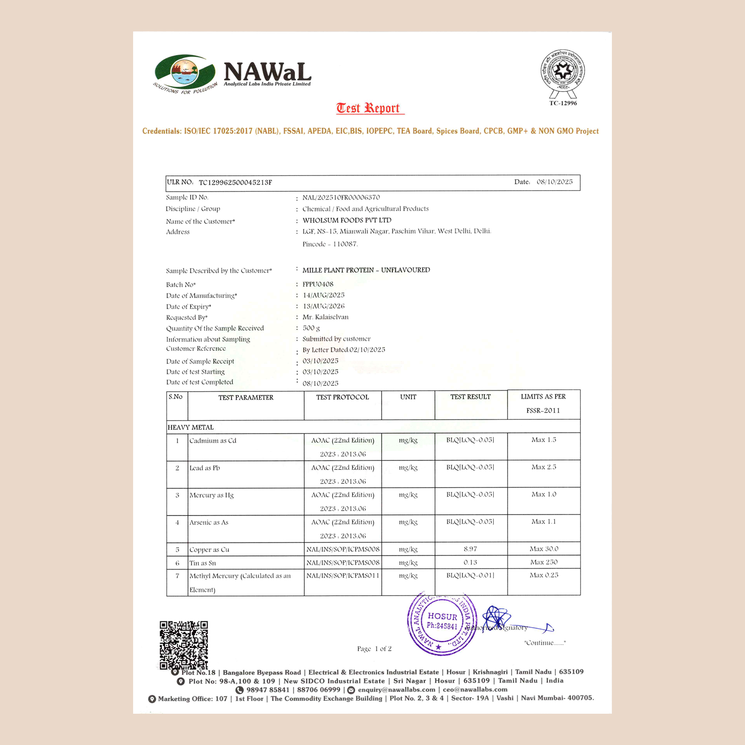 Mille Plant Protein | 31g/Scoop | Unflavoured | Fermented Yeast Protein | No Bloat I Vegan | 38g Trial Pack